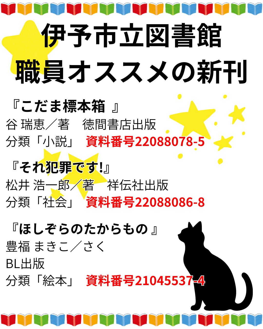 伊予市立図書館にて、新着図書が到着いたしました。 児童、一般を合わせて50冊の資料が追加されました。