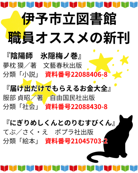 気になる図書を見つけた方はぜひ、伊予市立図書館に足を運んでみてください。