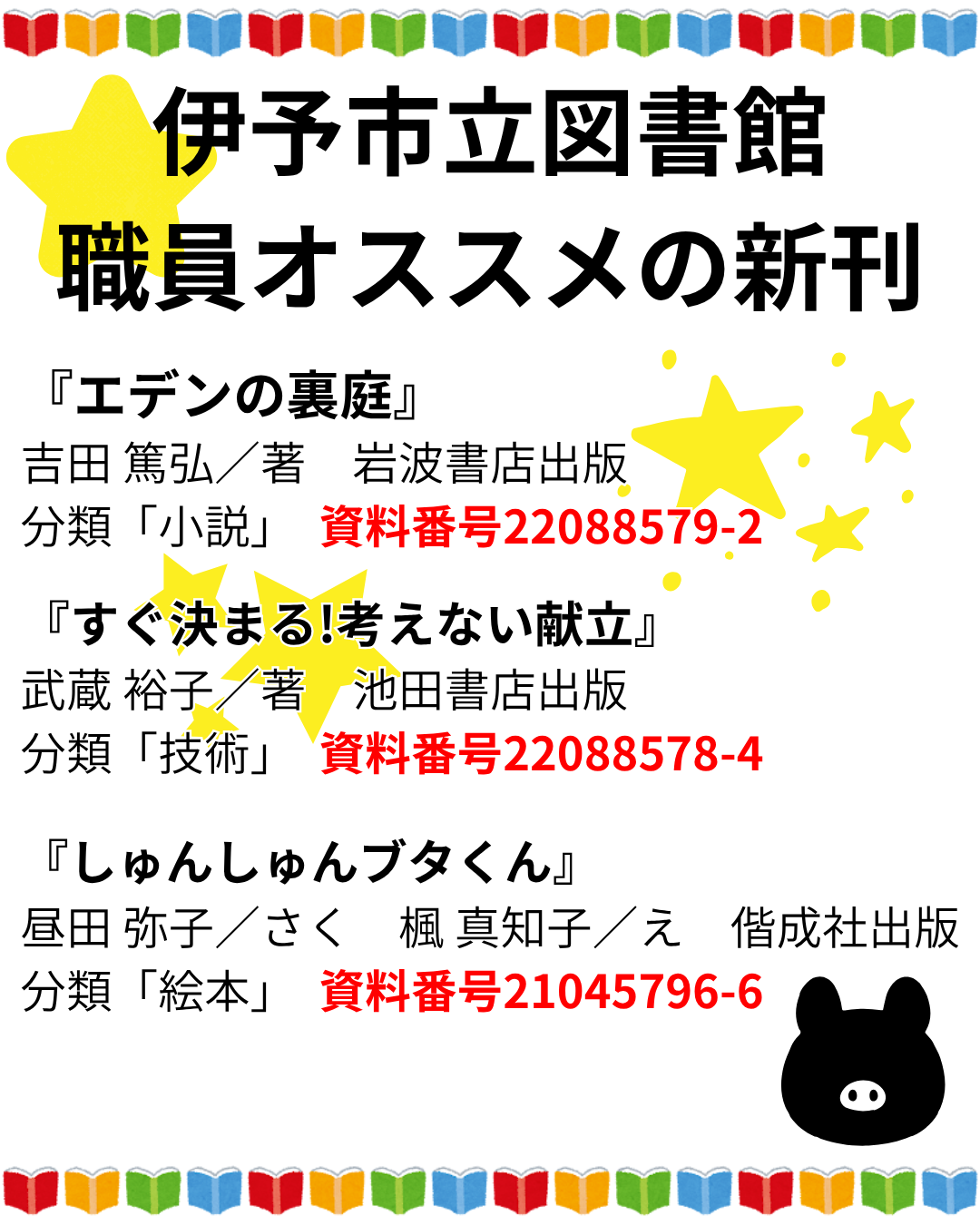 気になる図書を見つけた方はぜひ、伊予市立図書館に足を運んでみてください。