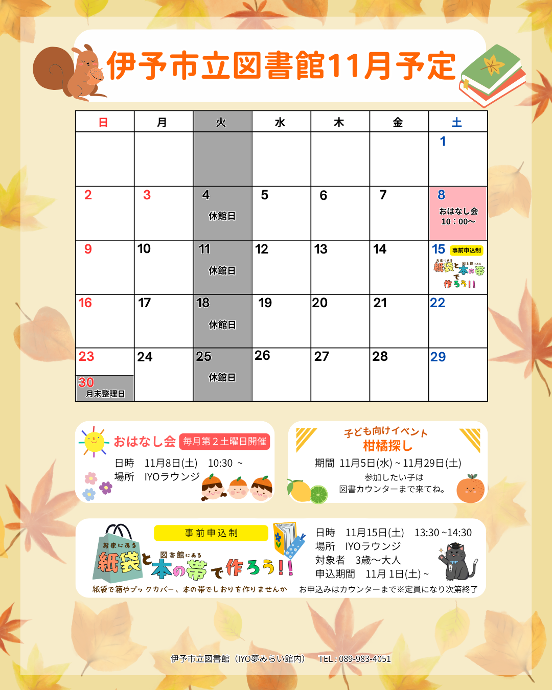 伊予市立図書館では11月もたくさんのイベントを実施します!