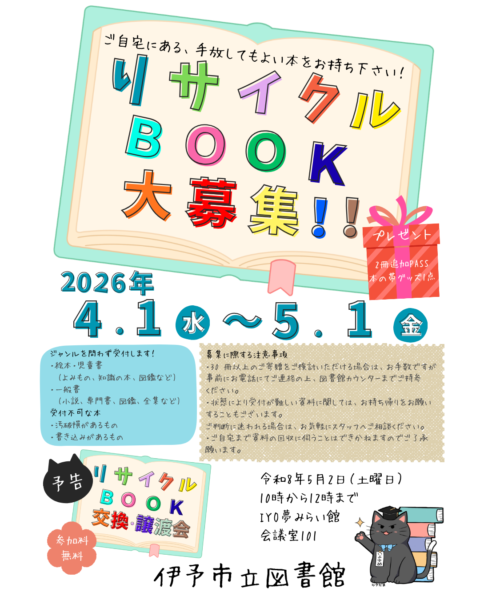 図書館では、5/2(土)開催予定のイベント「リサイクルBOOK交換・譲渡会」に向けて本の寄贈を募集しております!注意事項をよくご確認ください。
