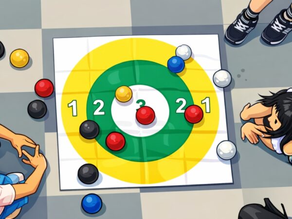 パラリンピックの正式種目。ジャックボール(目標となる白いボールに、赤と青のボールを各6球ずつ投げたり転がしたり、近づけて点数を競います。