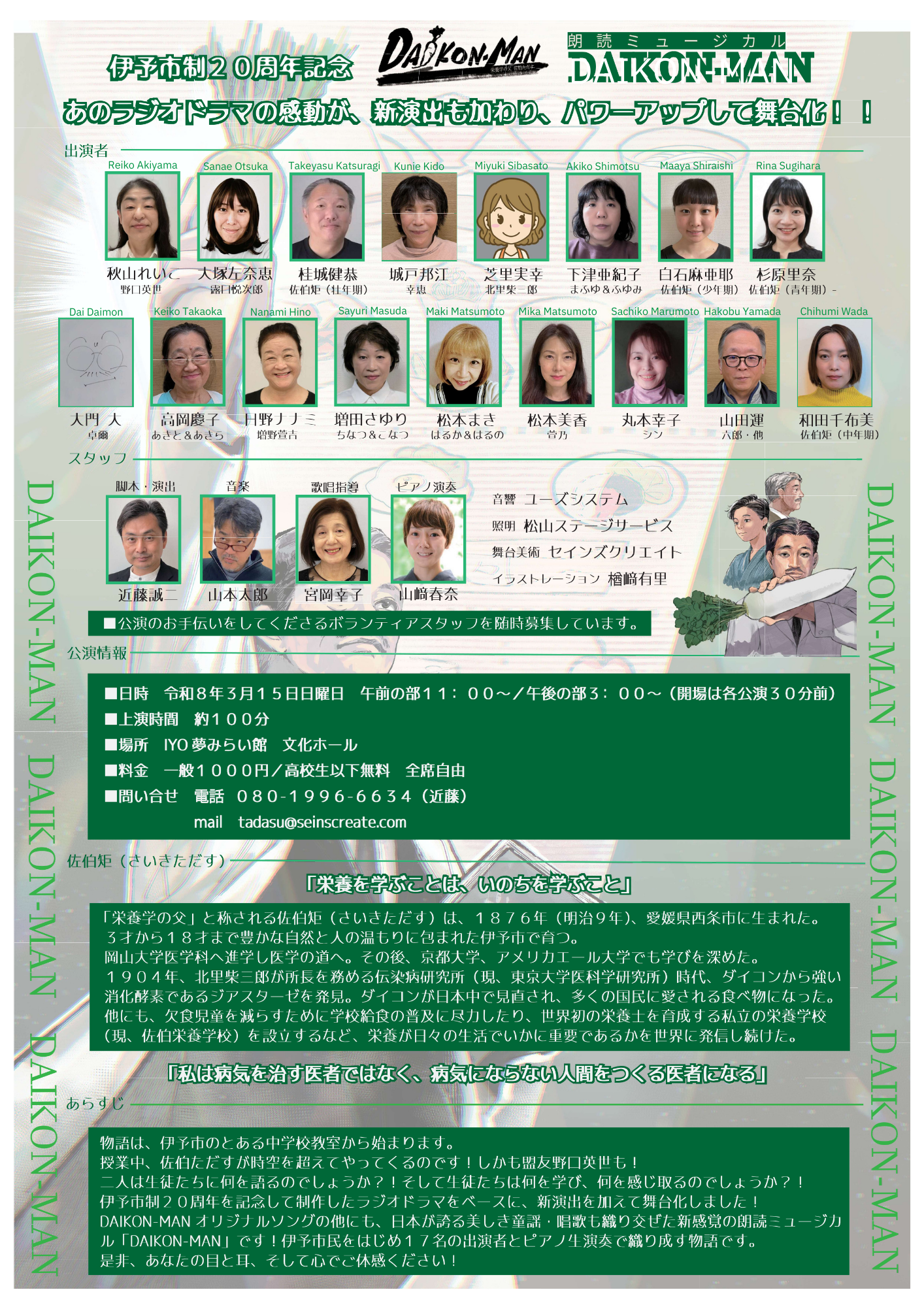 伊予市制20周年記念ラジオドラマ『DAIKON-MAN』が舞台に!新演出をプラスし、パワーアップした感動をお届けします!