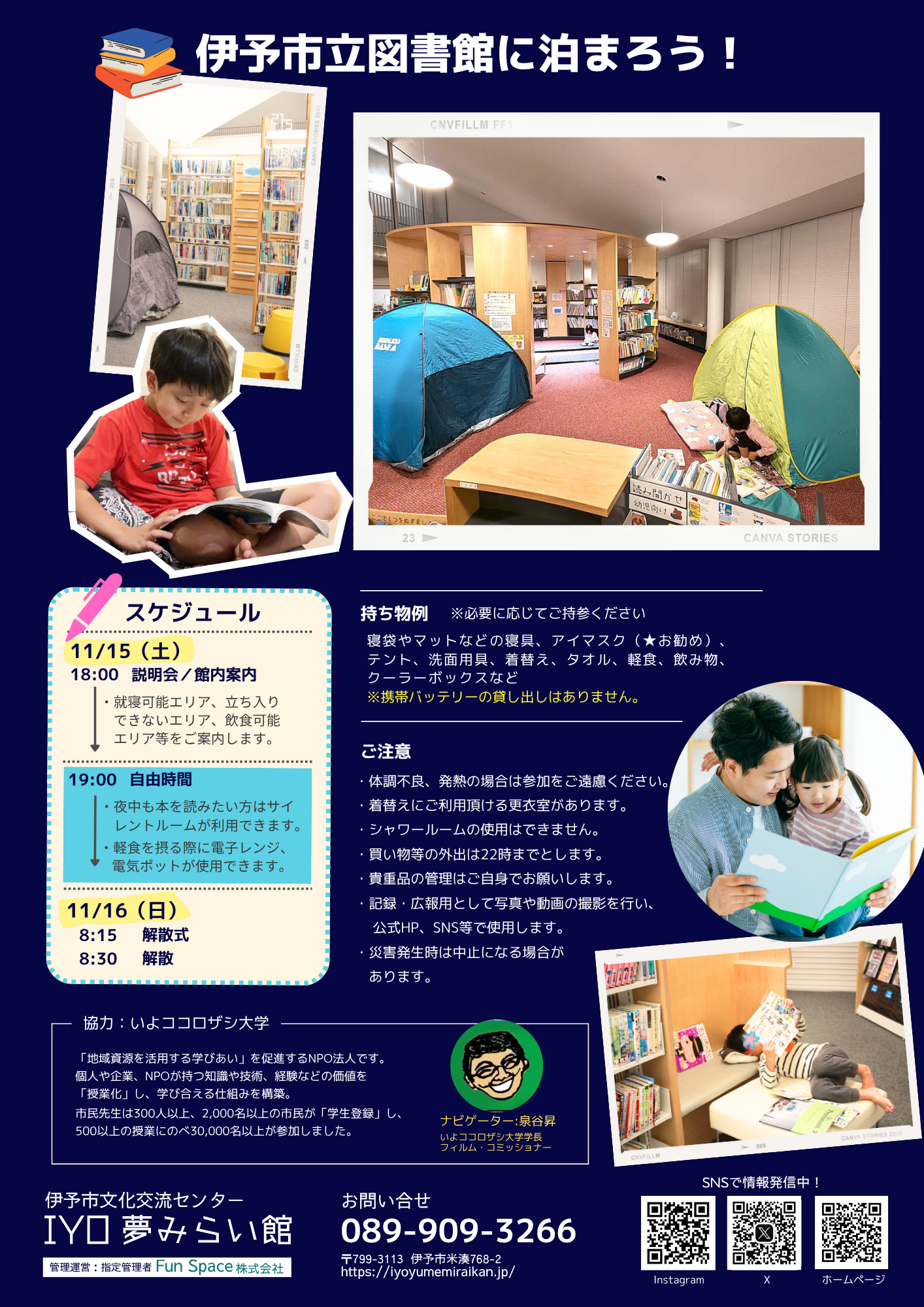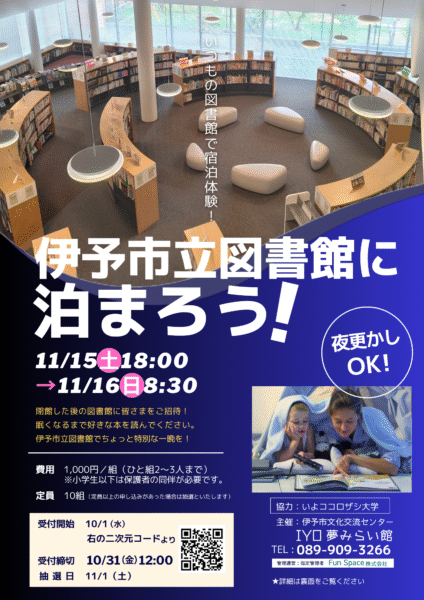 伊予市立図書館でちょっと特別な一晩を過ごしましょう。