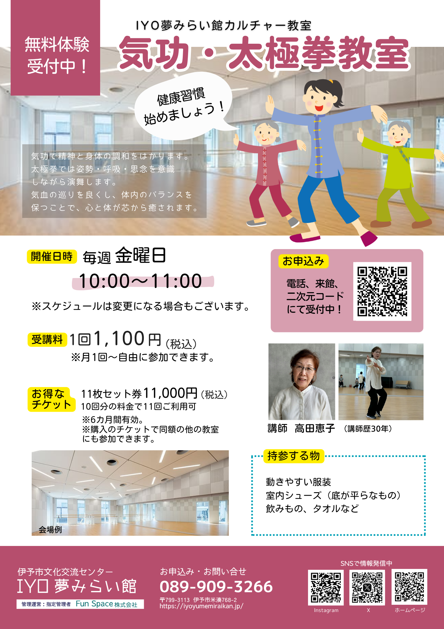 10回分の料金で11回ご利用できる「IYO夢みらい館 カルチャー教室チケット・11枚セット」11,000円も販売いたします。