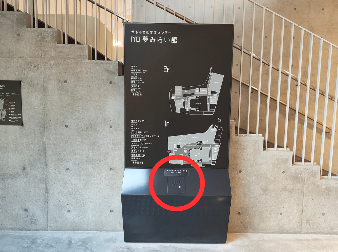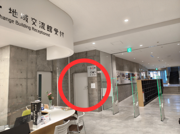 設置場所:1階受付カウンター横、2階男子トイレと女子トイレの間、ホール利用者用トイレ正面