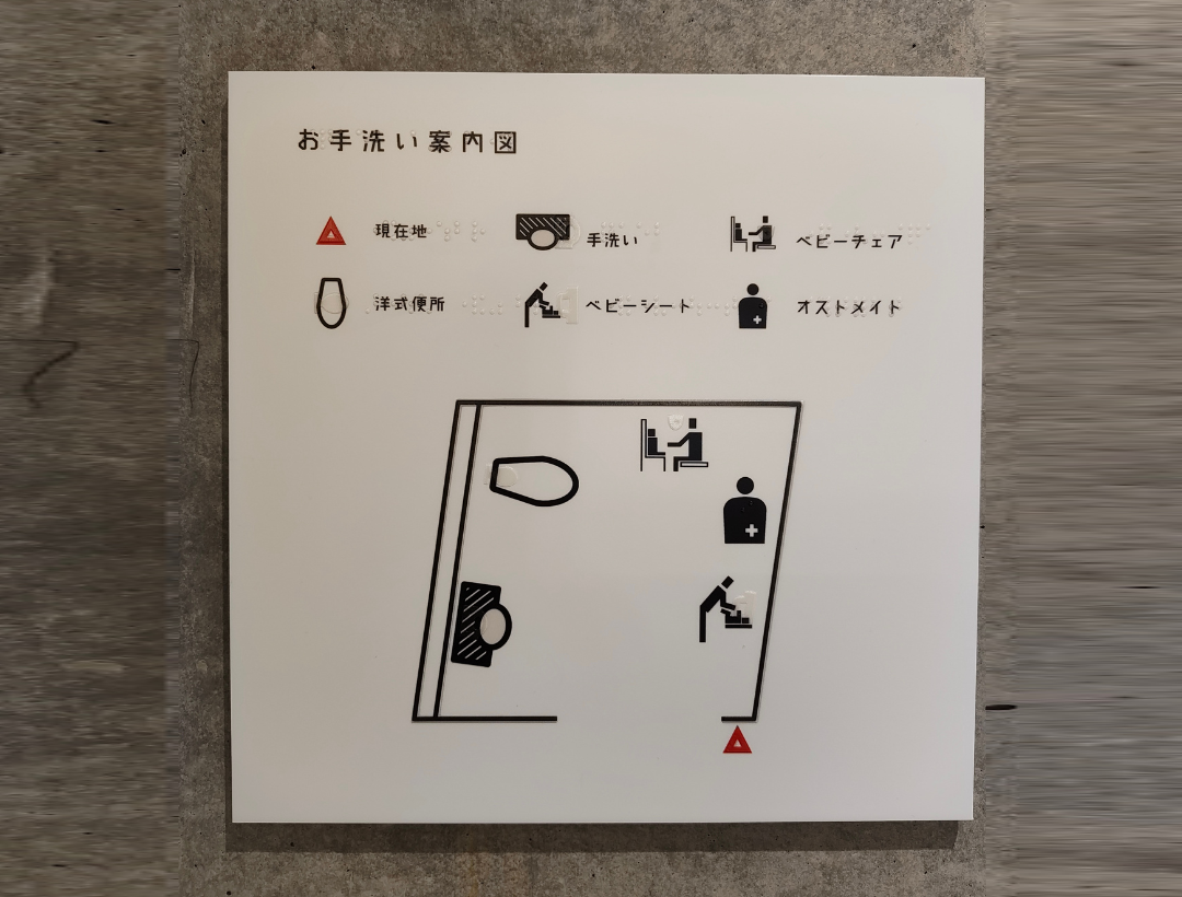 ※多目的トイレ入口付近にトイレ室内の点字案内図があります。